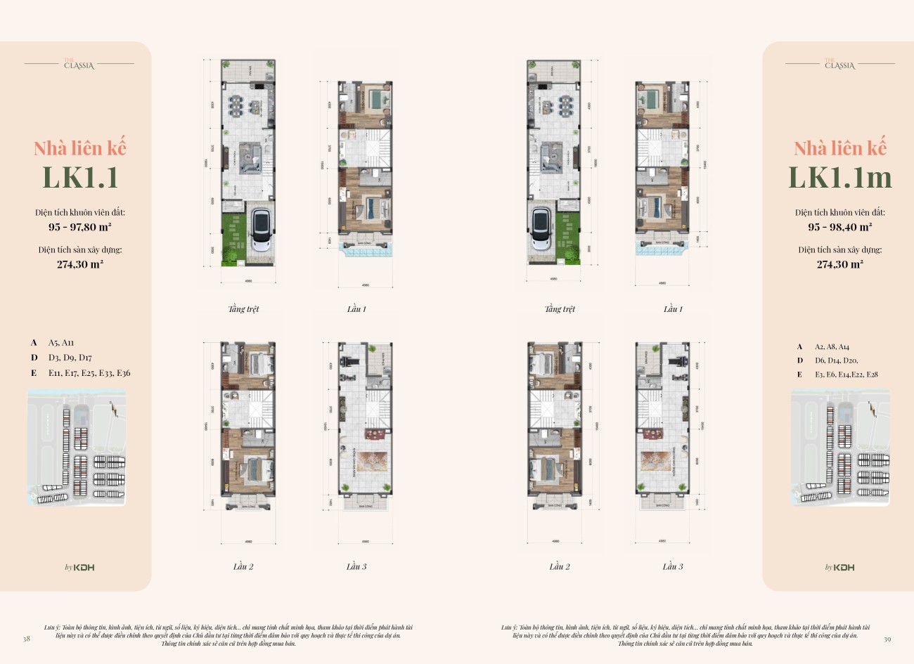 ✅Block E Dự án Classia: Gồm có 38 căn với diện tích chủ yếu loại 5x19m, Có 2 hướng nhà là: Đông Nam, Tây Bắc. ✅Block F The Classia Quận 9: Gồm có 25 căn với diện tích chủ yếu loại 5x18m, Có 2 hướng nhà là: Tây Nam, Đông Bắc.