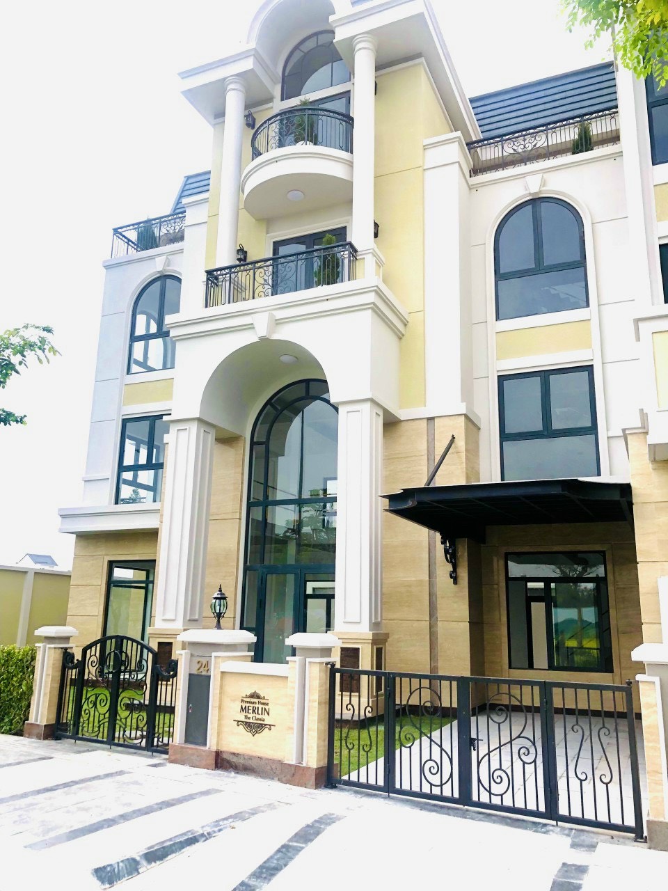 NÉT TINH HOA từ tổ ấm mang phong cách tân cổ điển cùng phần mái mansard đậm phong cách Pháp, những ban công sắt nghệ thuật có đường nét hoa văn cong mềm mại và các cửa sổ hình bán nguyệt rộng thoáng càng tôn lên diện mạo duy mỹ của ngôi nhà.