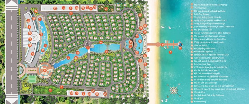 - Phân khu Serenity: bao gồm 192 căn biệt thự biển Được thiết kế như một khu vườn bốn mùa tạo nên một không gian an yên nhẹ nhàng, giúp du khách có những khoảng lặng đúng lúc để thư giãn, nghỉ ngơi, hít thật sâu bầu không khí trong lành và tràn đầy nguồn năng lượng hạnh phúc, quên đi những mệt nhoài của bộn bề cuộc sống phố thị.